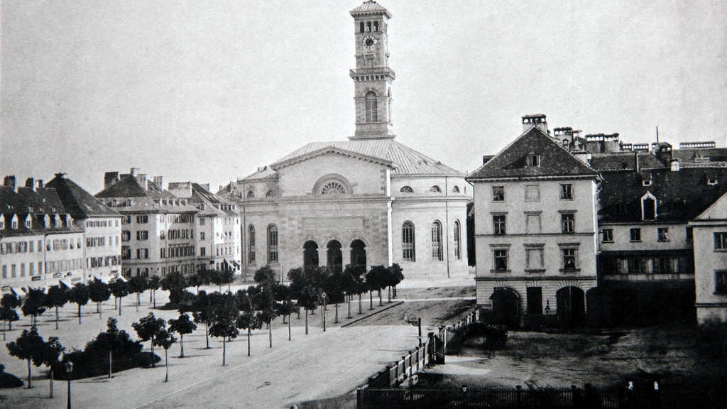 Am 5. August 1827 fand die Grundsteinlegung statt und am 27. August 1833 wurde die Kirche in Anwesenheit der Königinmutter Karoline feierlich geweiht. 1938 wurde sie von den Nationalsozialisten aus städtebaulichen Gründen, wie es offiziell hieß, innerhalb von drei Wochen abgebrochen.
